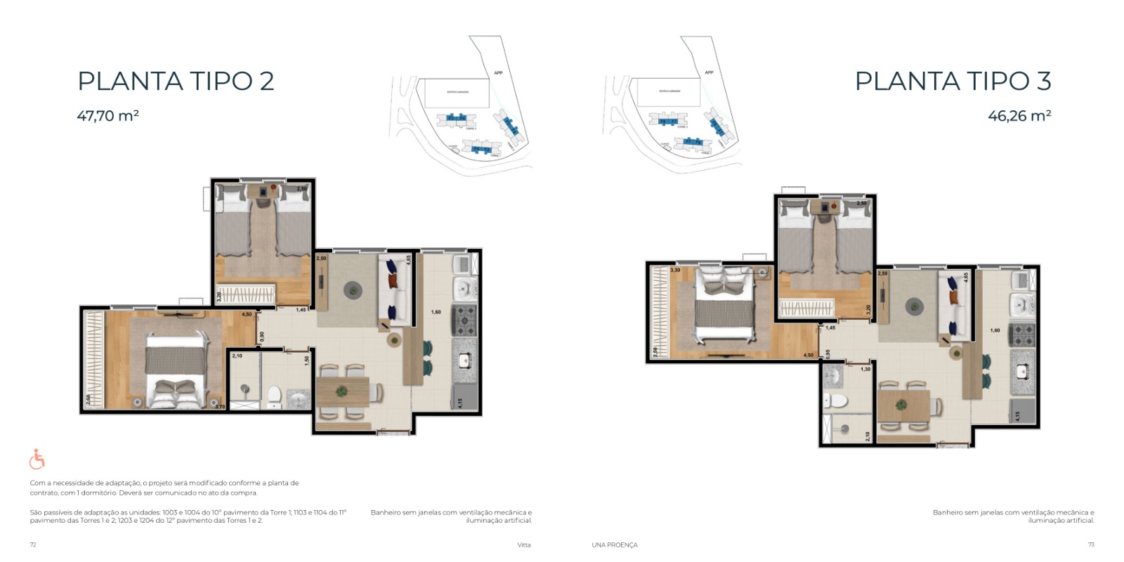 - Opções suíte com e sem varanda;