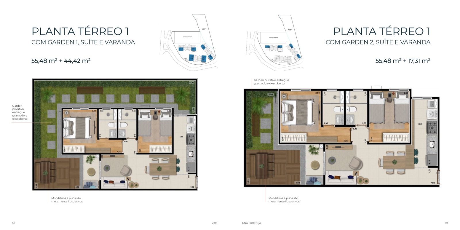 - Opções Garden com e sem suíte;